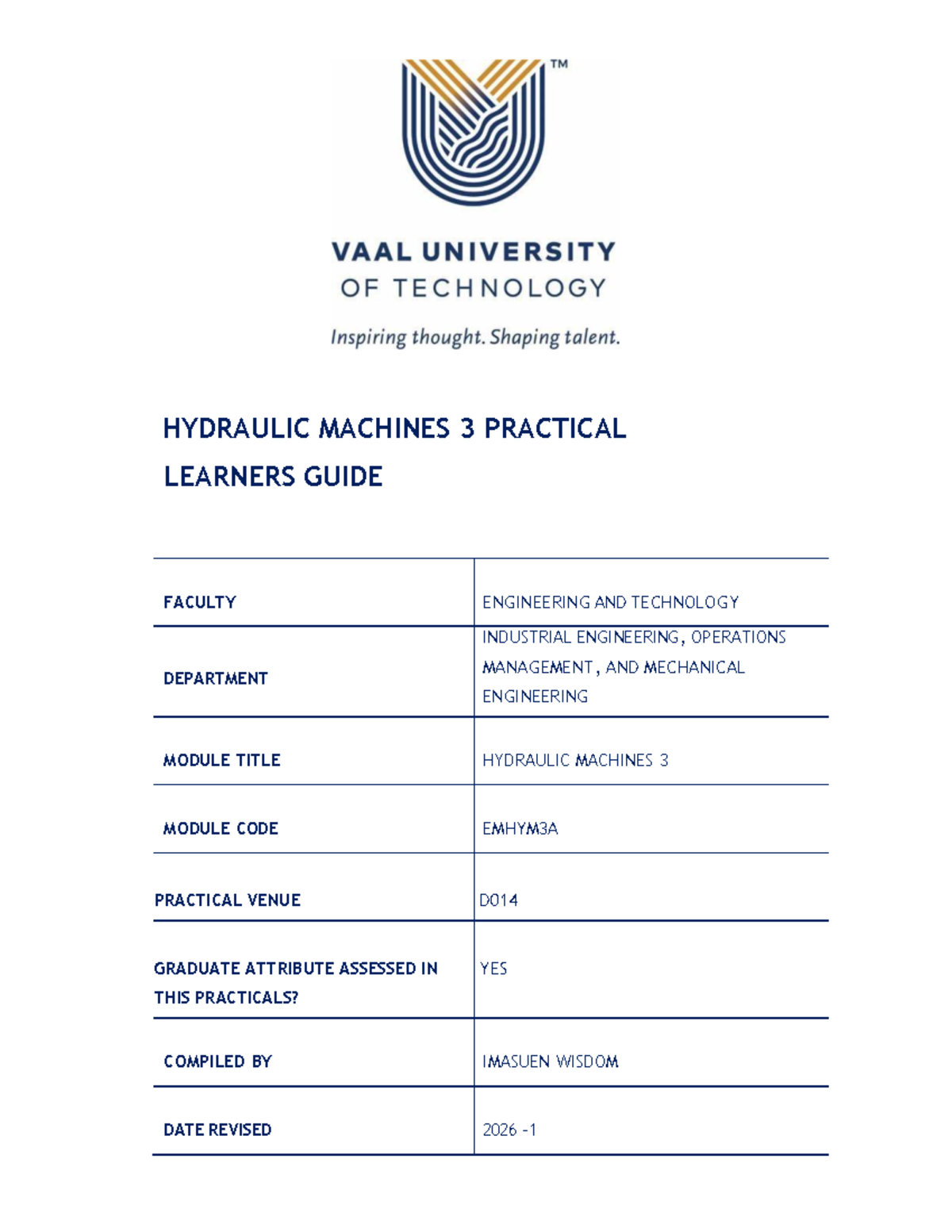 Hydraulic Machines 3 Practical Guide EMHYM3A - 2026 Edition - Studocu