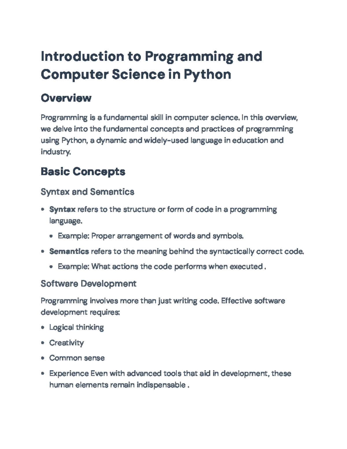 Intro to Programming & Computer Science: Python Overview - Introduction ...