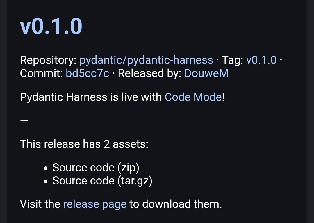 Some unofficial news: @pydantic Code Mode is out! https://t.co/28jDdsQxHa