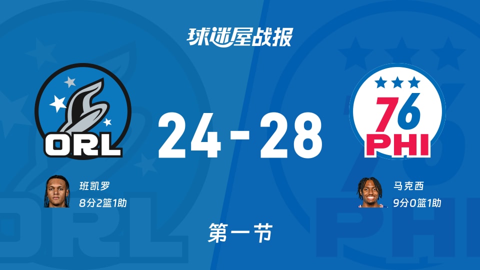 NBA附加赛:76人首节领先魔术4分,马克西得到9分,班凯罗得到8分
