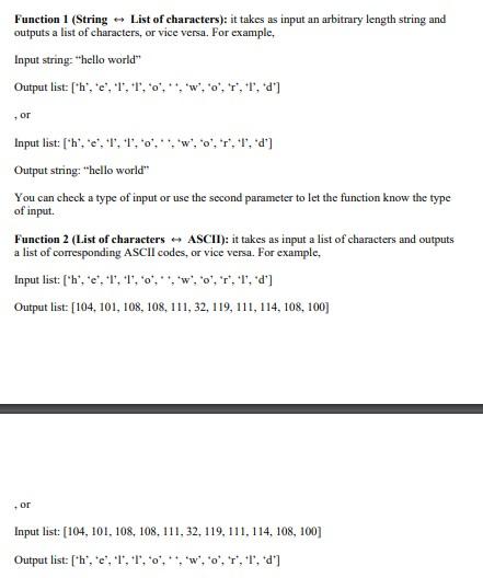 Solved Function 1 (String - List of characters): it takes as | Chegg.com