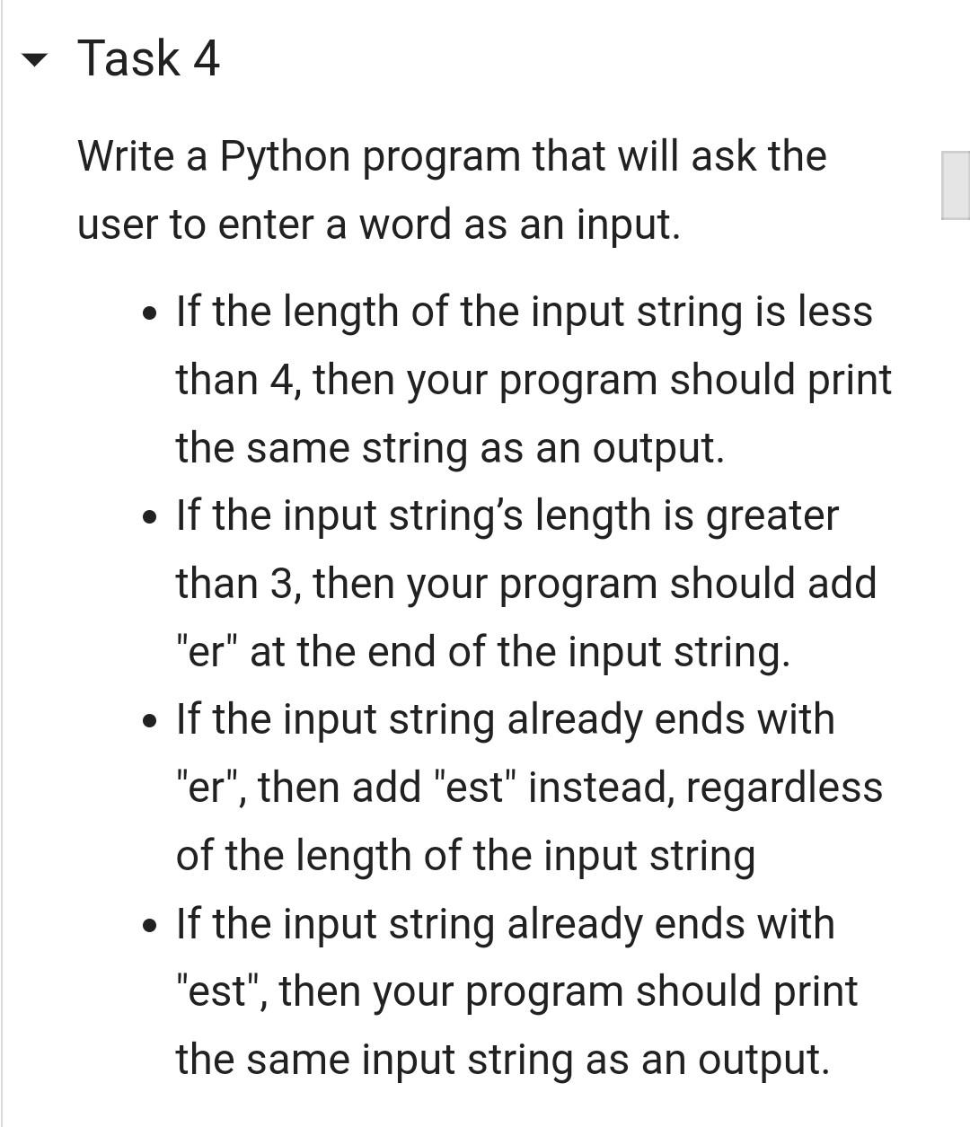 Solved Task 1 Write a Python program that takes a String as | Chegg.com