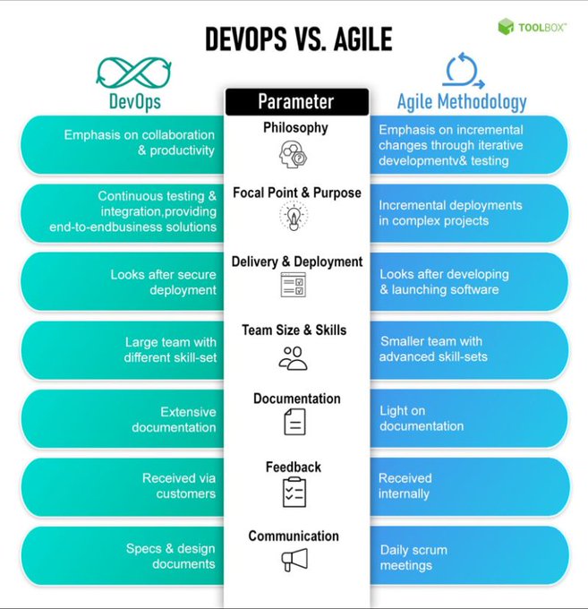 Based on this image's title: “Forgeahead on Twitter: "The main differences between #DevOps and #Agile ...”