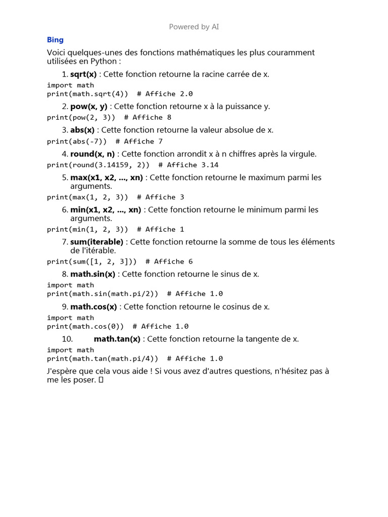 Fonctions mathématiques en Python | PDF | Méthodes et références ...