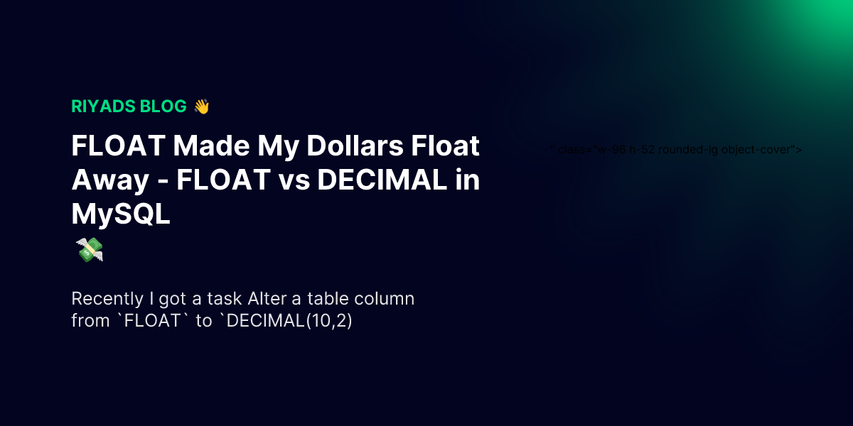 FLOAT Made My Dollars Float Away - FLOAT vs DECIMAL in MySQL 💸 - Riyad ...