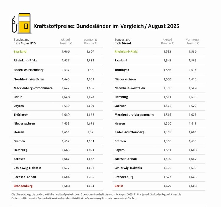 Aktueller Spritpreis: So teuer sind Benzin und Diesel | ADAC
