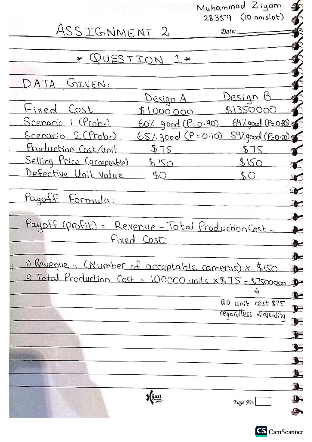 PROM Assignment 2 - Design Cost Analysis for Scenario 607 - Studocu
