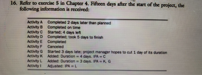 Solved 16. Refer to exercise 5 in Chapter 4. Fifteen days | Chegg.com