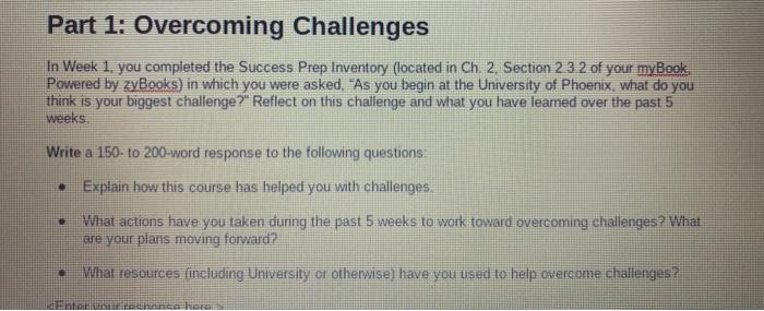 Solved Part 1: Overcoming Challenges In Week 1, you | Chegg.com
