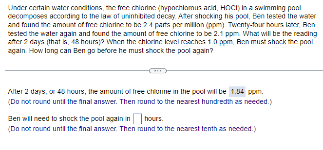Solved After 2 days, or 48 hours, the amount of free | Chegg.com