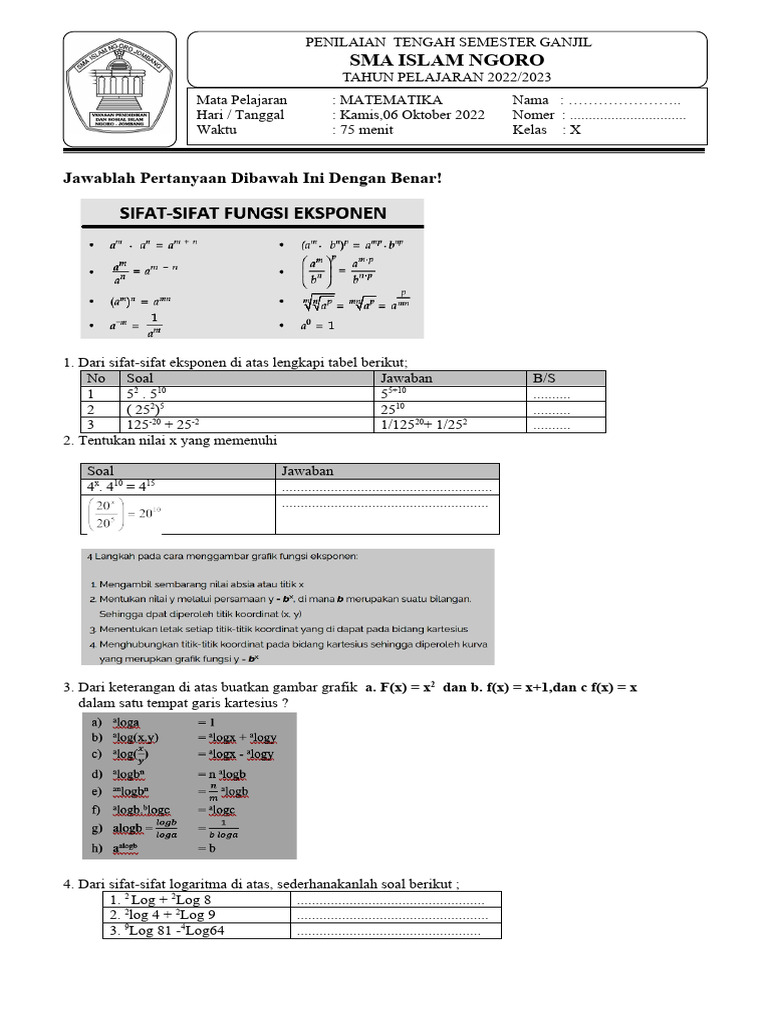 Soal Matematika Dasar Kelas X | PDF