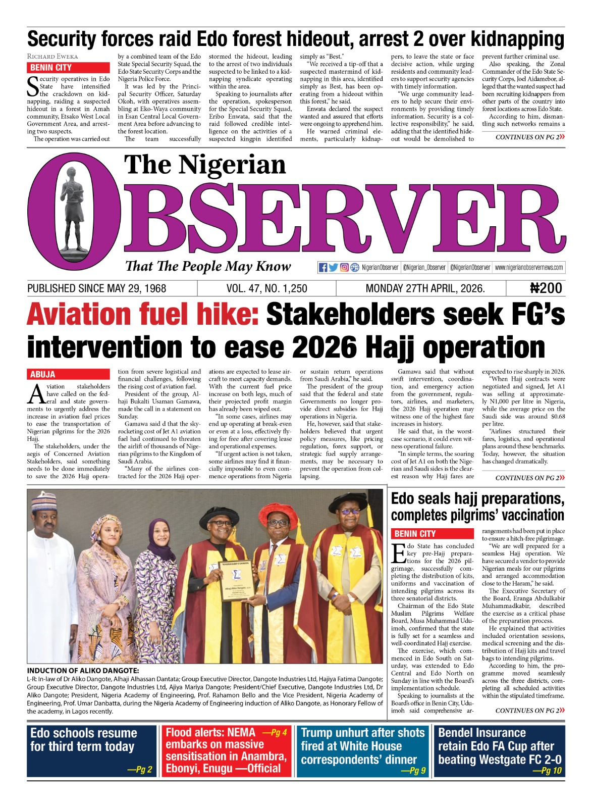 Monday April 27, 2026 – The Nigerian Observer