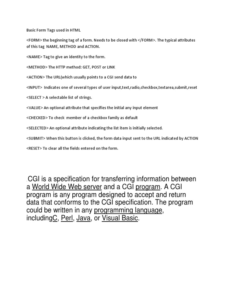HTML Form Tags Guide | PDF | Computers