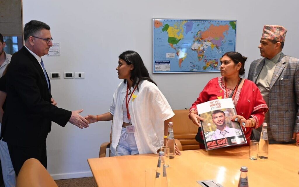 FM Sa’ar meets with visiting family of Nepalese hostage Bipin Joshi