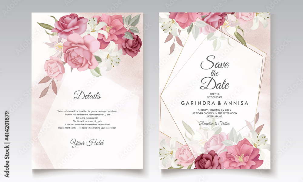 Beautiful floral frame wedding invitation card template Premium Vector ...