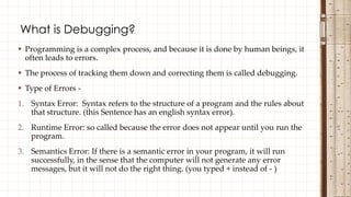 Presentation on debugging | PPTX | Programming Languages | Computing