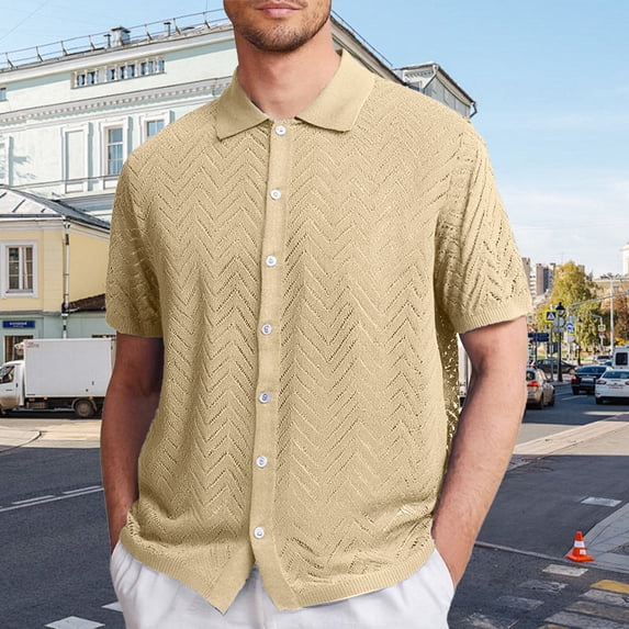 Aueoeo Mens Solid Color Short Sleeve Shirt Versatile Laple Collared ...