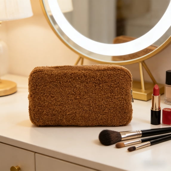 Cevemin Solid Color Teddy Fleece Storage Bag - Travel Portable ...