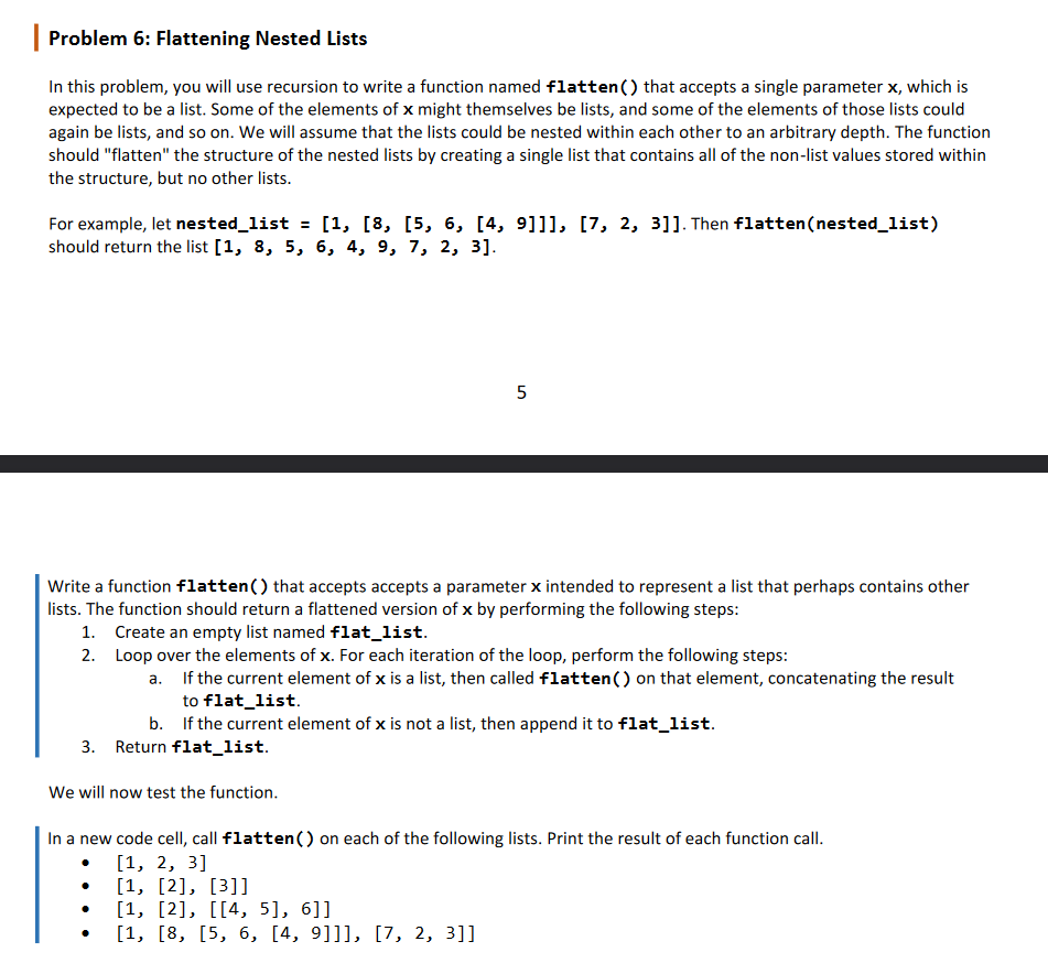 Solved Problem 6: Flattening Nested Lists In this problem, | Chegg.com