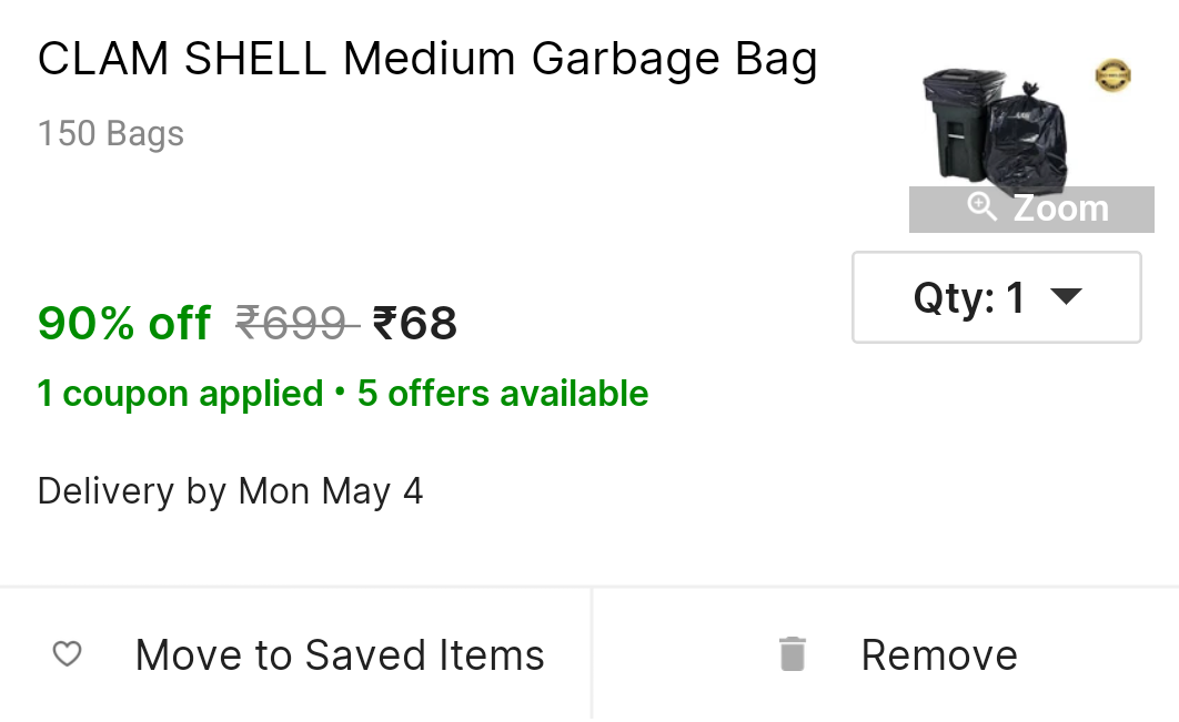 Clam shell Medium Garbage 150 Bags | Desidime