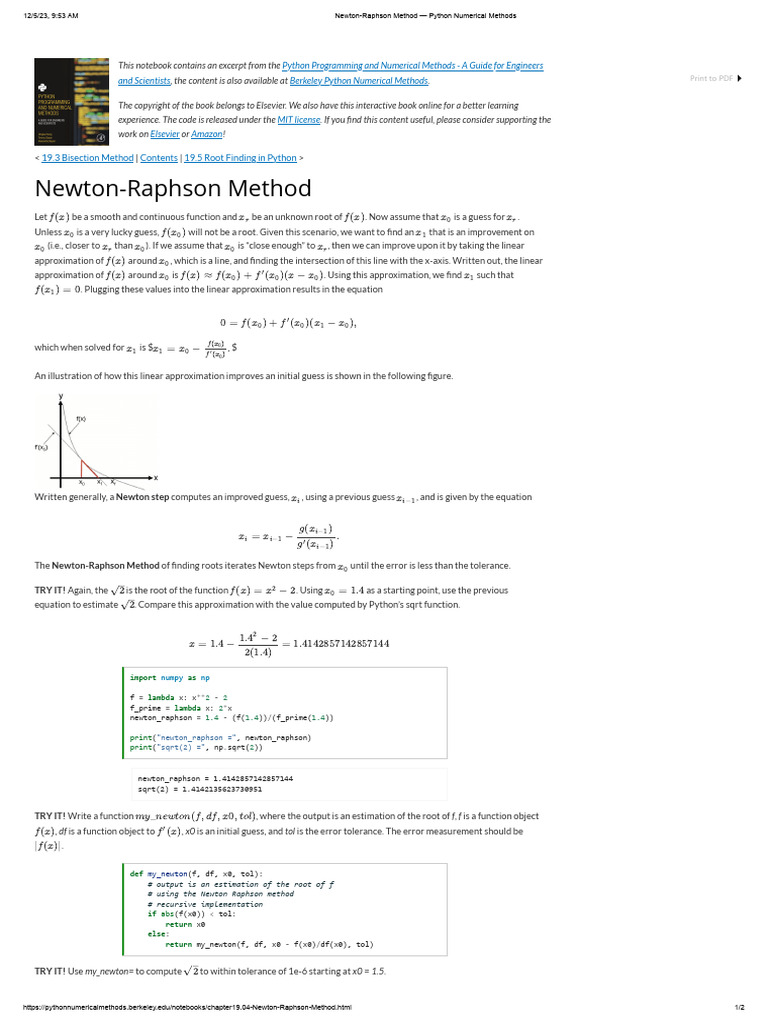 Newton-Raphson Method - Python Numerical Methods | PDF