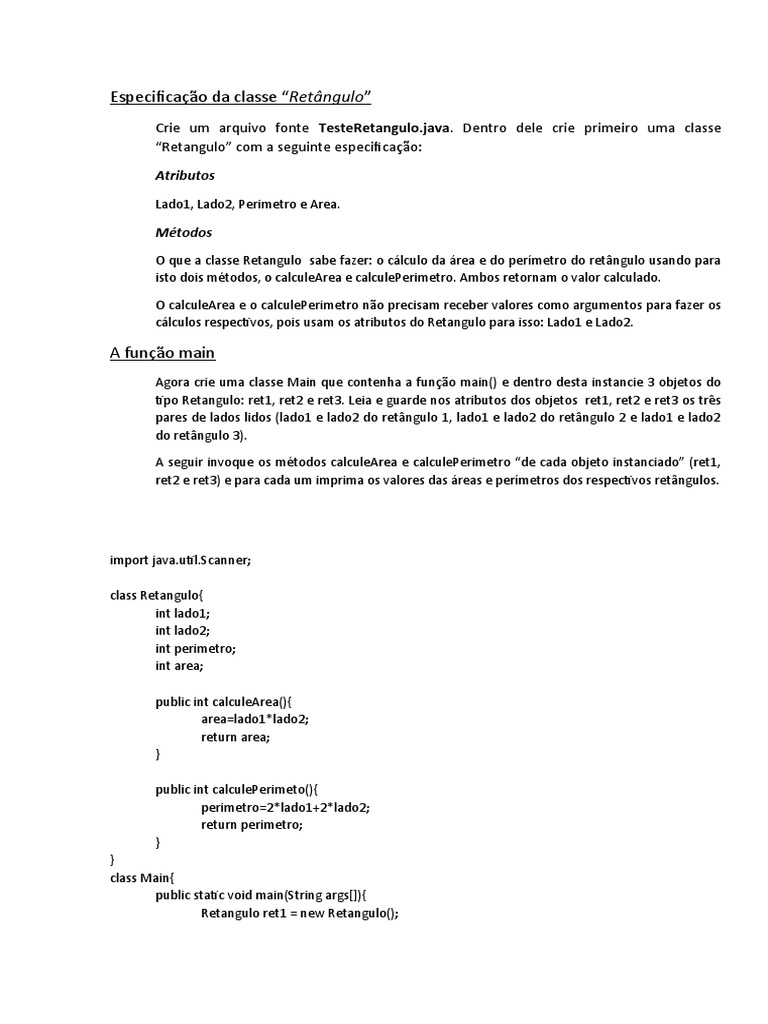 Calculo Da Area e Do Perimetro Do Retangulo - Java | PDF | Java ...