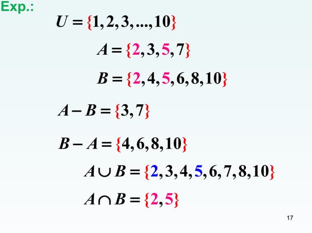 Set Operations Topic Including Union , Intersection, Disjoint etc De ...