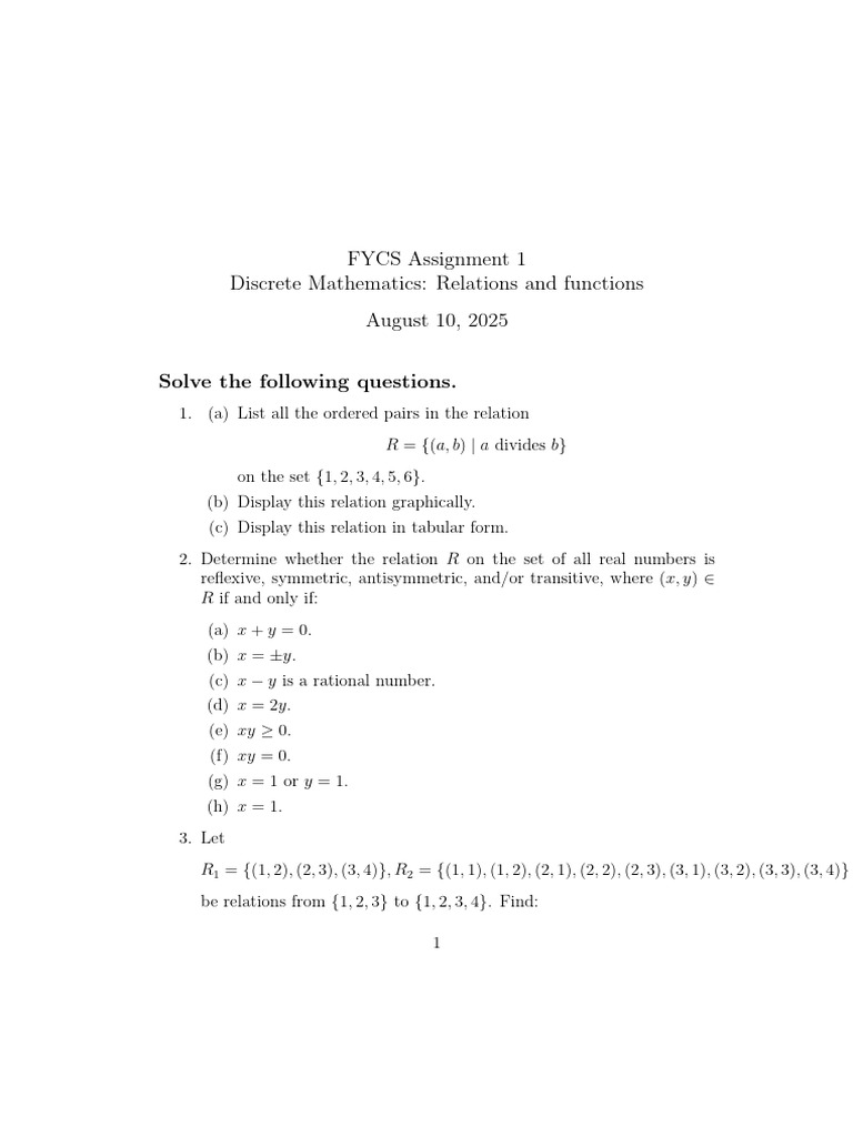 FYCS Assign 1 | PDF | Abstract Algebra | Mathematical Objects