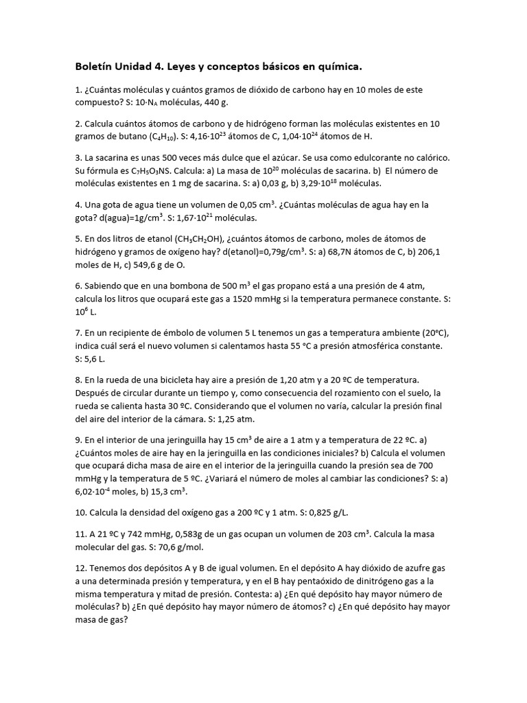 Boletín 4. Leyes y Conceptos Básicos en Química. | PDF | Concentración ...