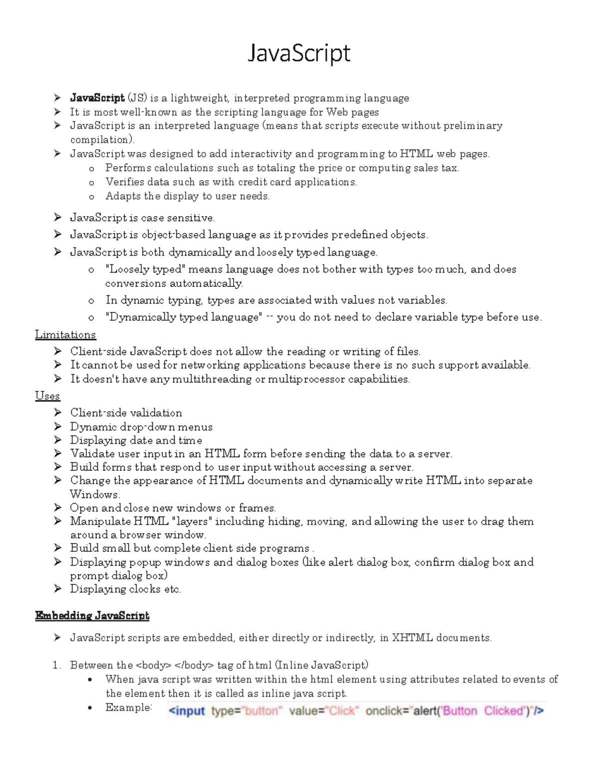 Unit 4 Intoduction To Javascript - JavaScript JavaScript (JS) is a ...