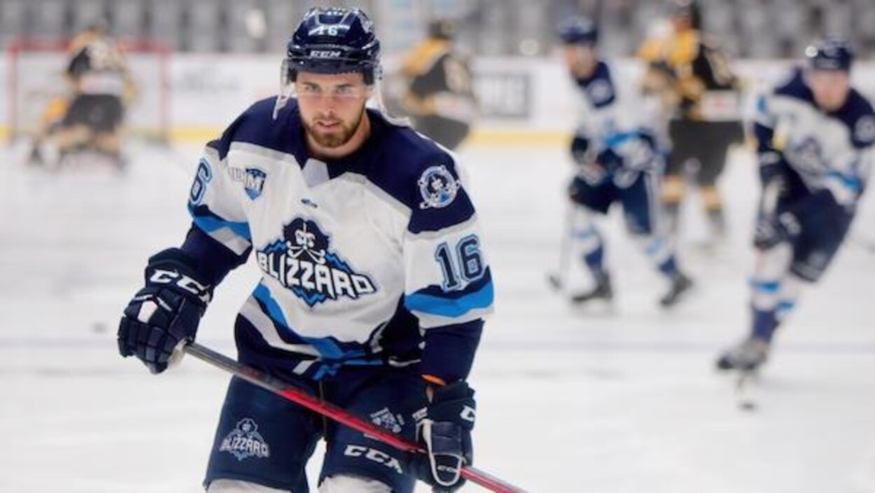 Le joueur vedette du Blizzard Olivier Coulombe hors-jeu après un coup à ...
