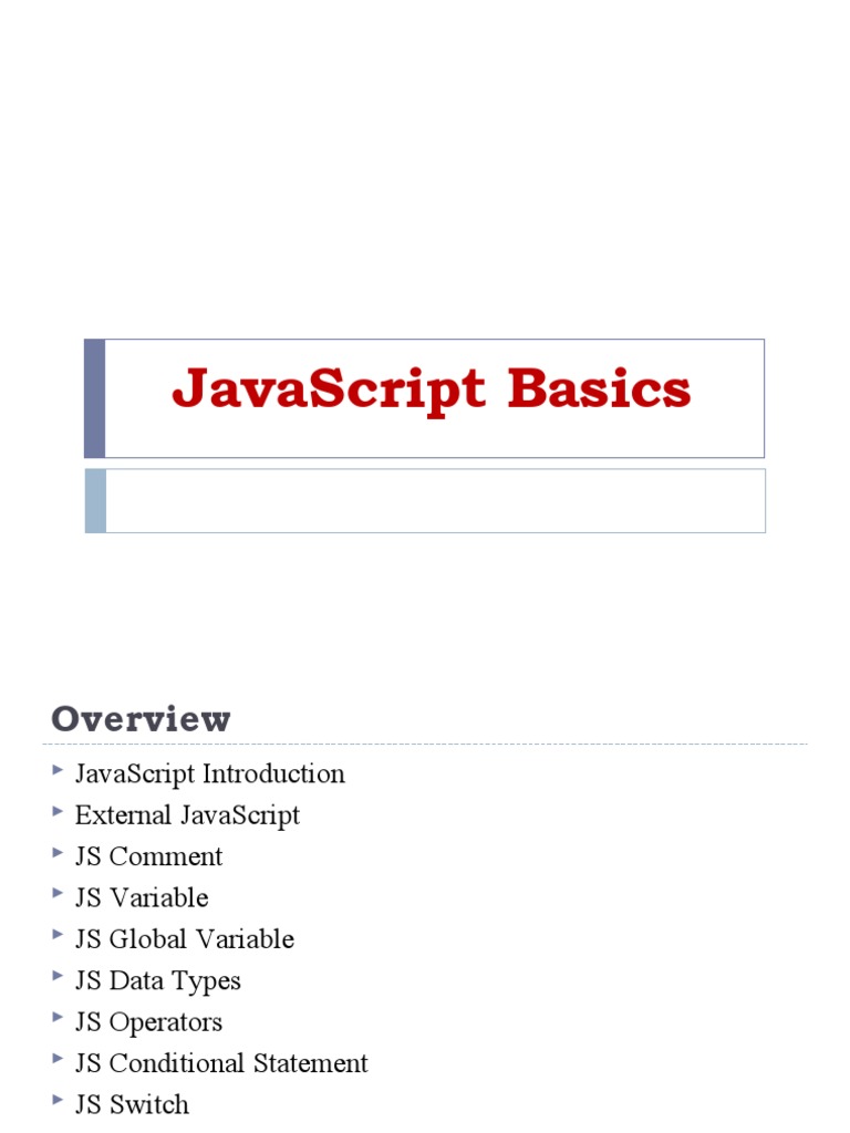 Based on this image's title: “Basics of JavaScript | PDF | Java Script | Control Flow