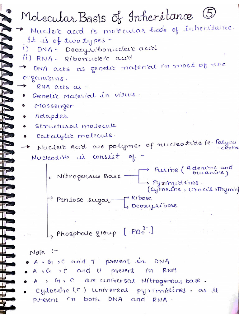 Molecular Basis of Inheritance Handwritten Notes Pdf Download 2025