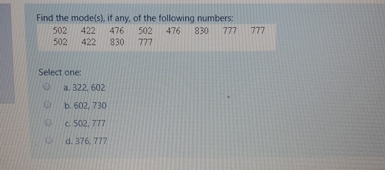 Solved Find the mode(s), if any, of the following numbers: | Chegg.com