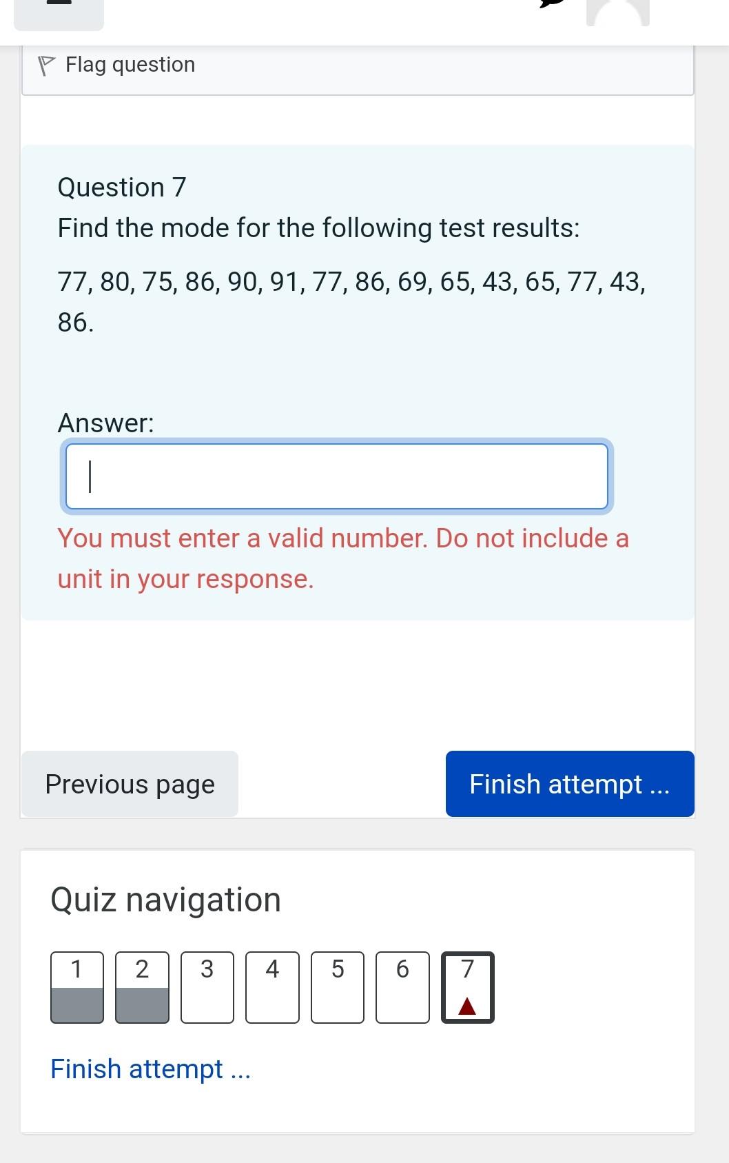 Solved Question 7 Find the mode for the following test | Chegg.com