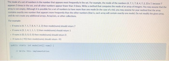 Solved Mode Function In statistics, the mode of a set of | Chegg.com