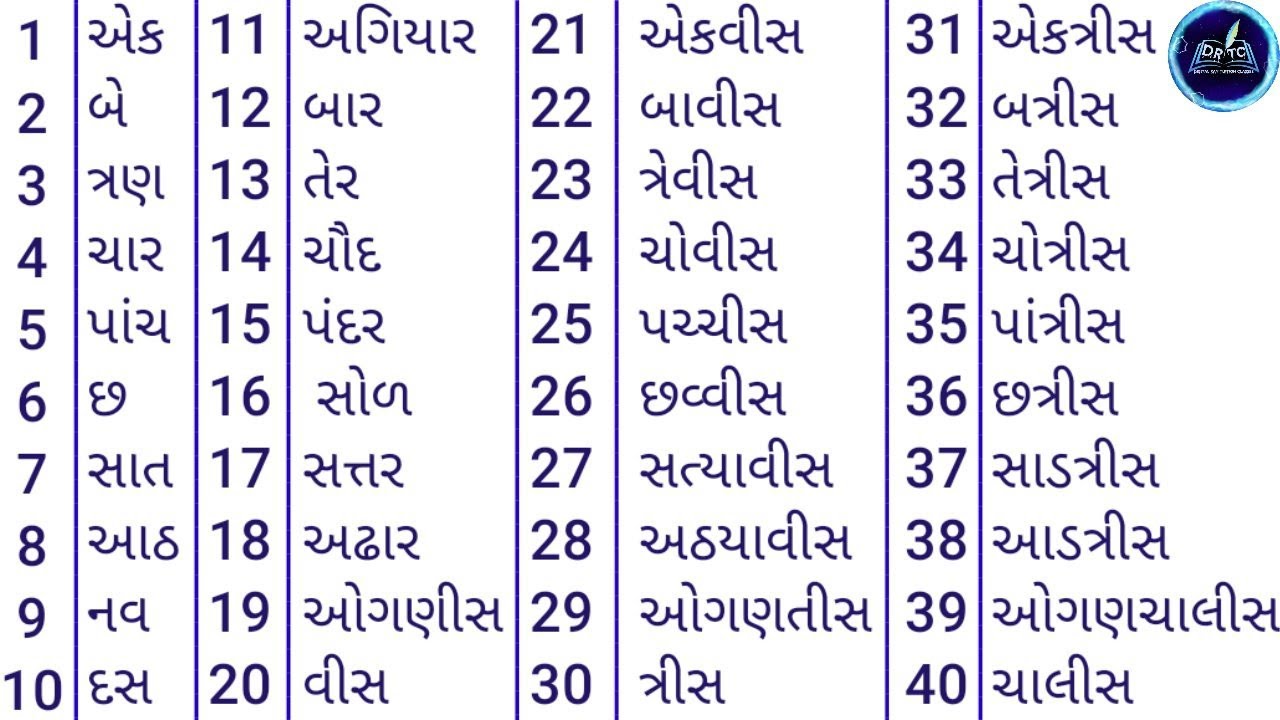 1 to 100 Gujarati Numbers | Gujarati Ekda | Gujarati Ank | Ekada ...