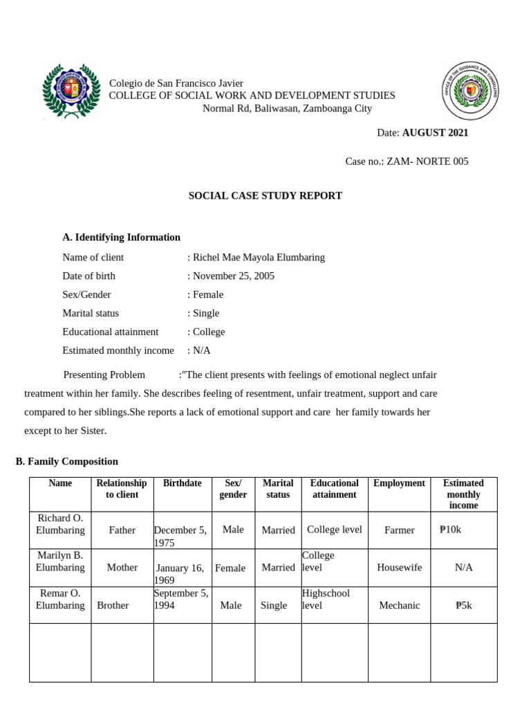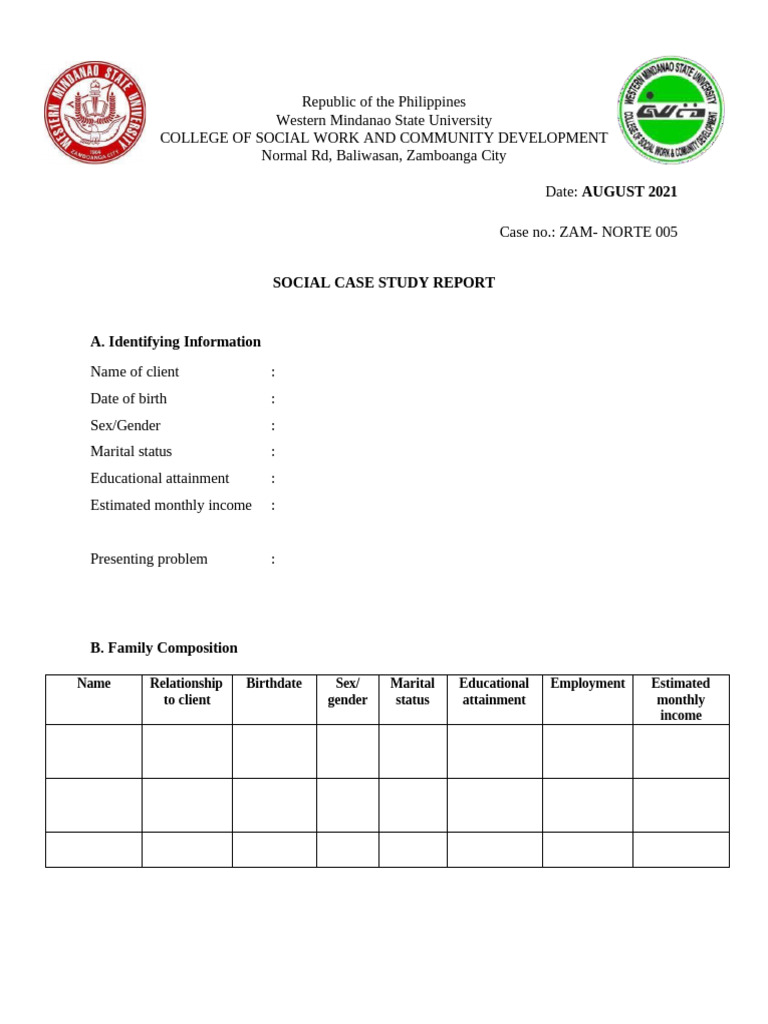 Social Work Case Study Template | PDF | Social Psychology | Gender
