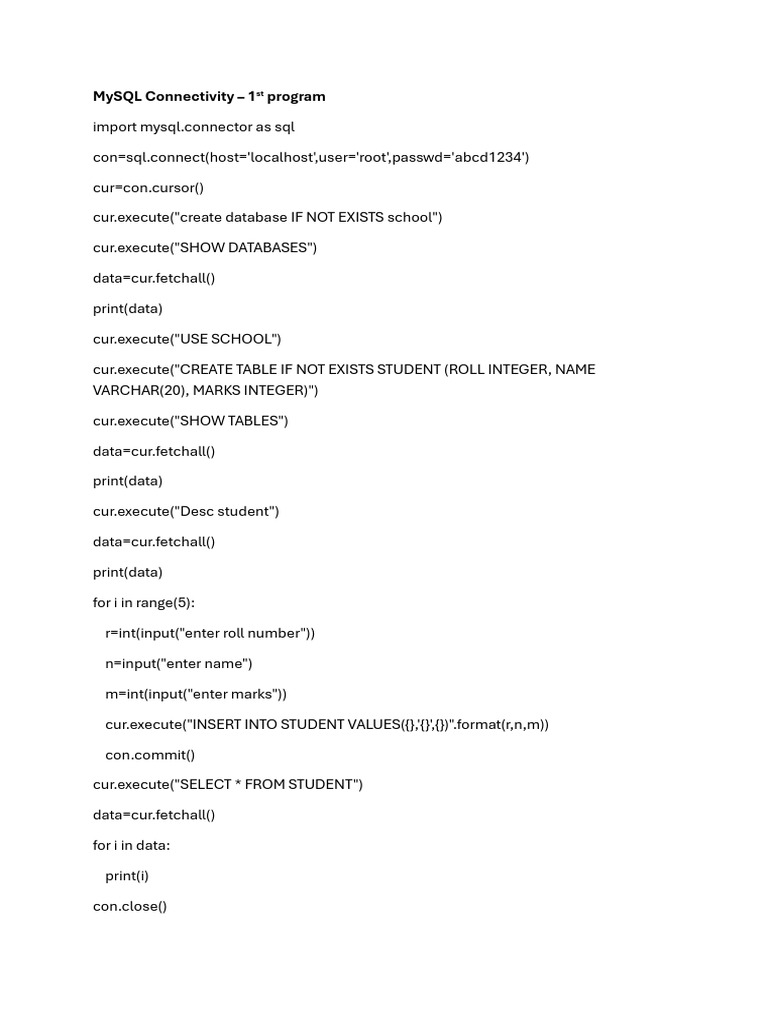 Python MySQL Database Connectivity Guide | PDF | Databases | Computer ...