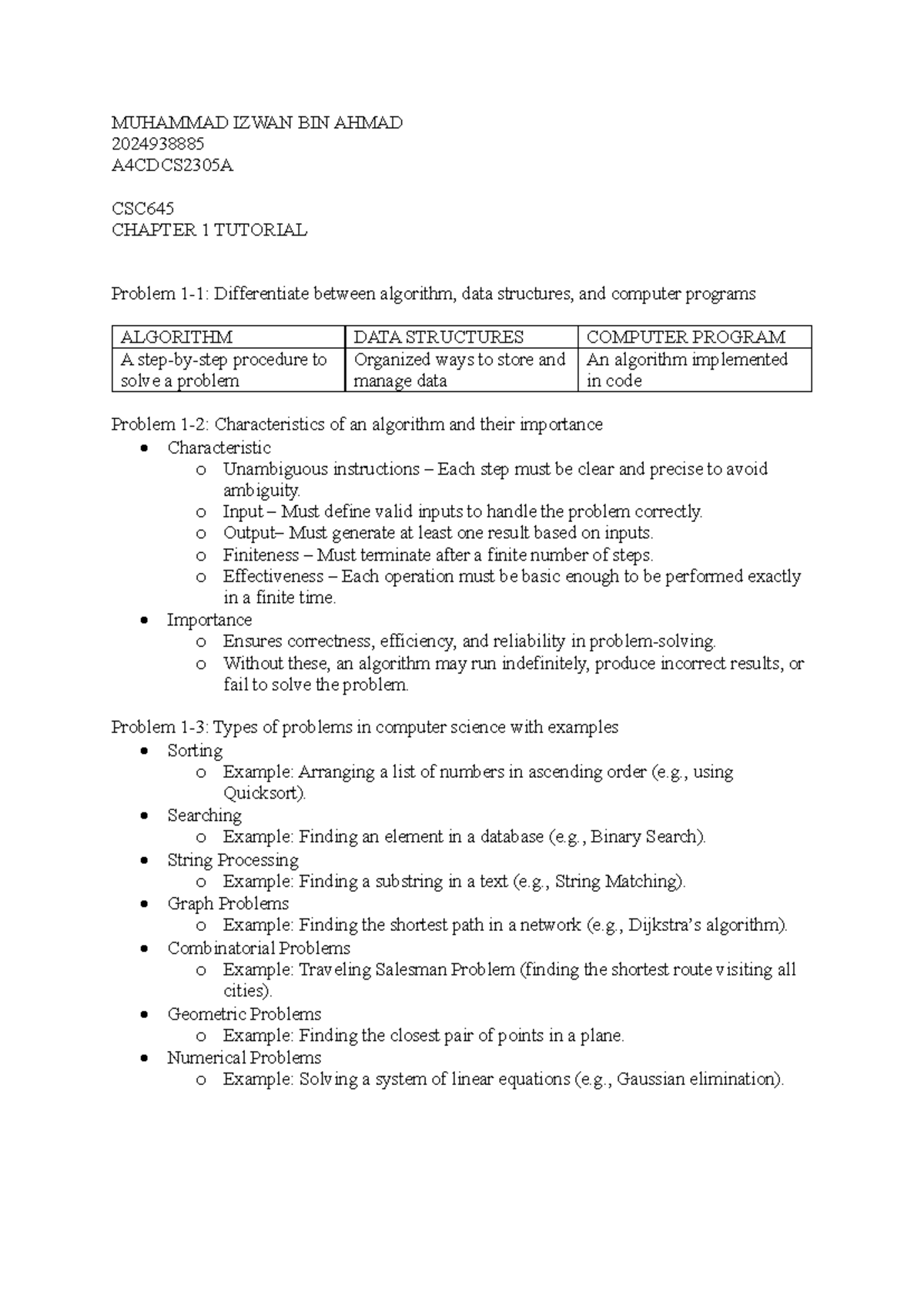 Chapter 1 Tutorial: Algorithms, Data Structures & Programs - CSC645 ...