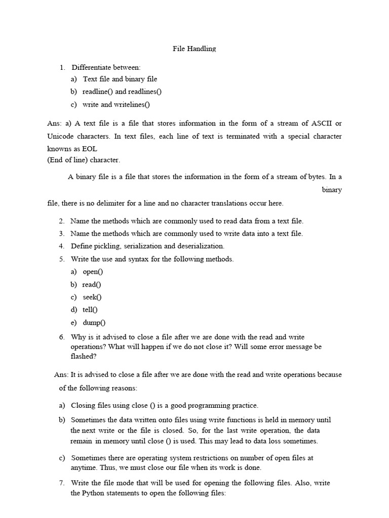 File Handling Full Notes | PDF | Text File | Comma Separated Values