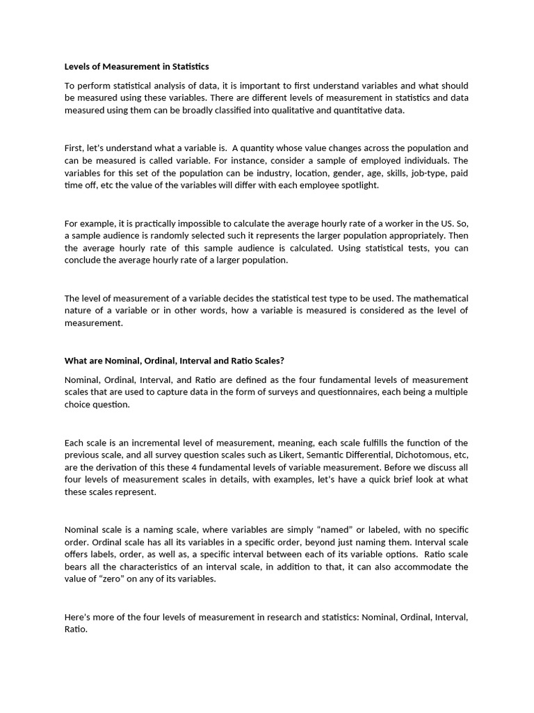 Levels of Measurement in Statistics | PDF | Level Of Measurement ...