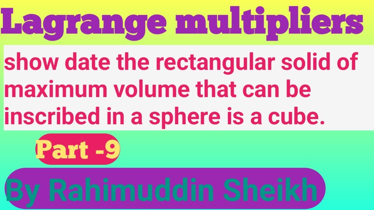 Maxima and Minima of Lagrange method of undetermined multipliers part ...