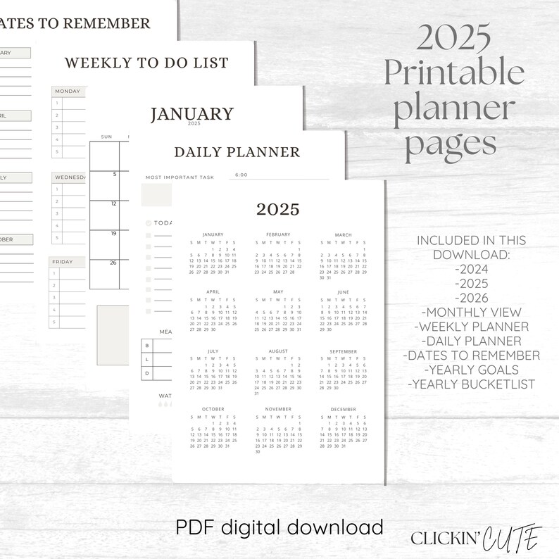 2025 Printable Planner Digital PDF Download Yearly, Monthly, Weekly ...