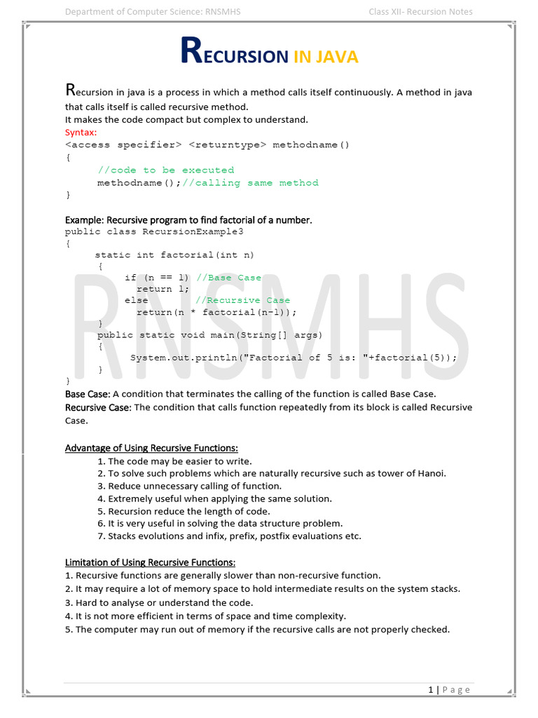Java - Recursion (Full Notes) | PDF | Recursion | Mathematical Logic