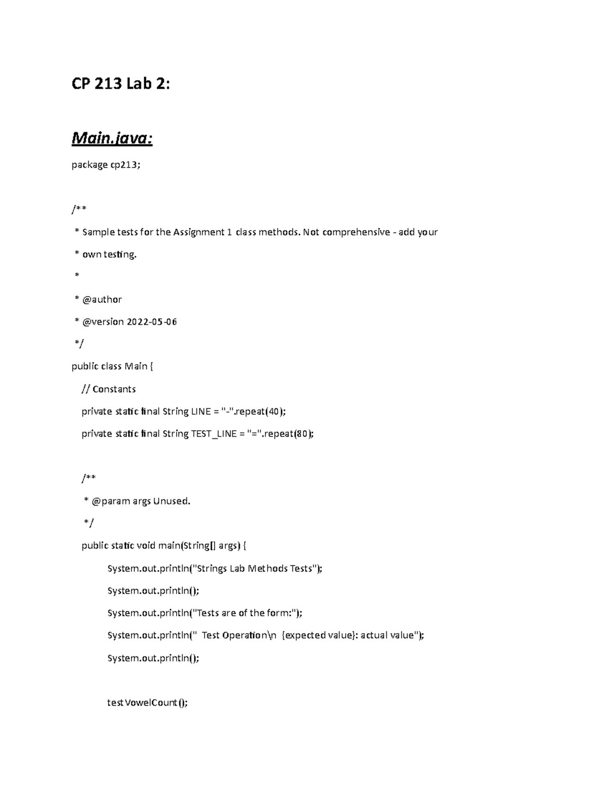 CP 213 Lab 2 - Java String Methods Testing Code Example - Studocu