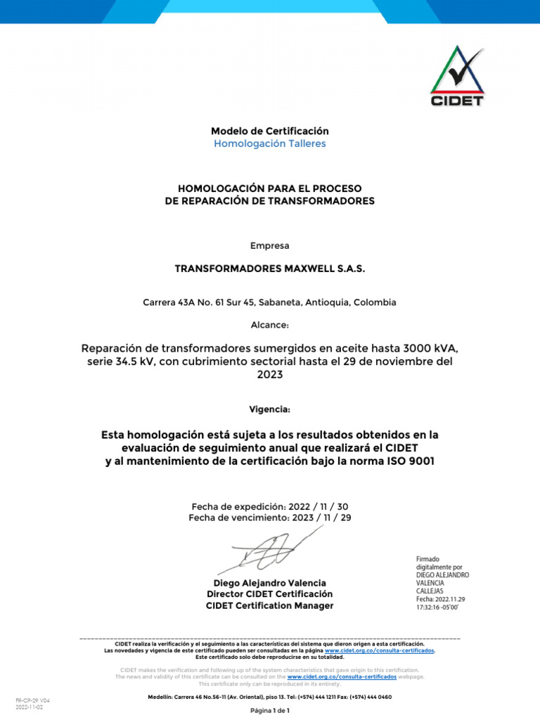 Cert CIDET Reparacion | PDF