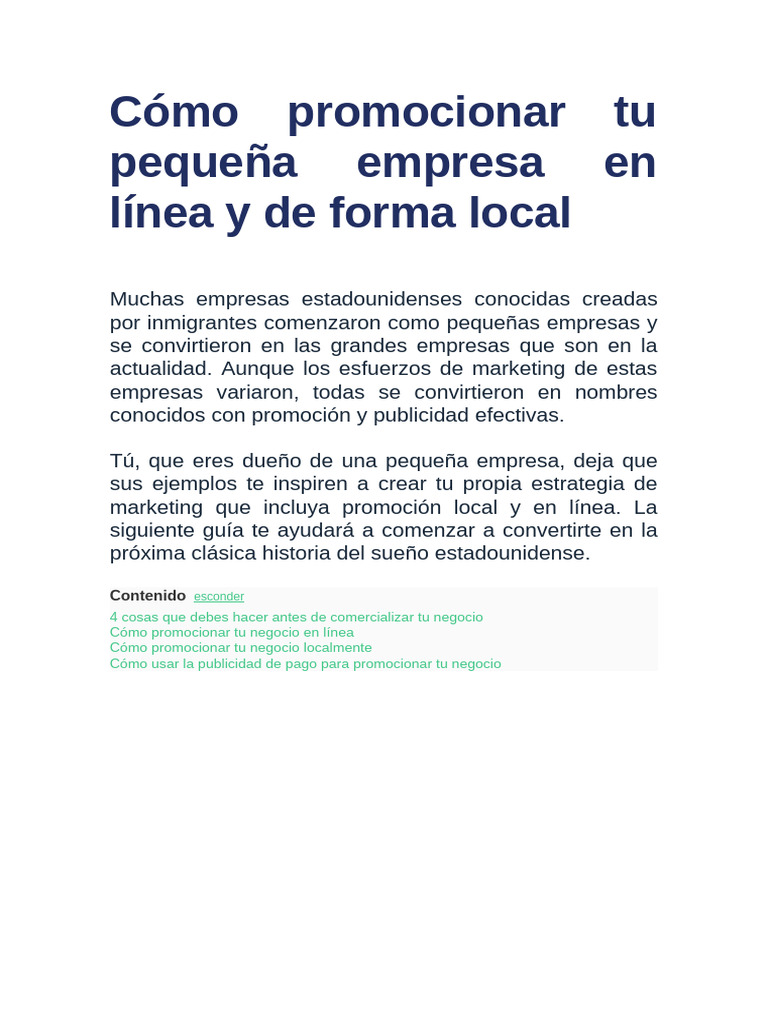 Cómo promocionar tu pequeña empresa en línea y de forma local | PDF