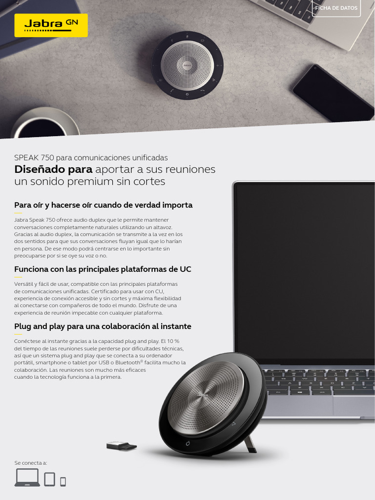Jabra Speak 750 UC Datasheet A4 Web ES | PDF