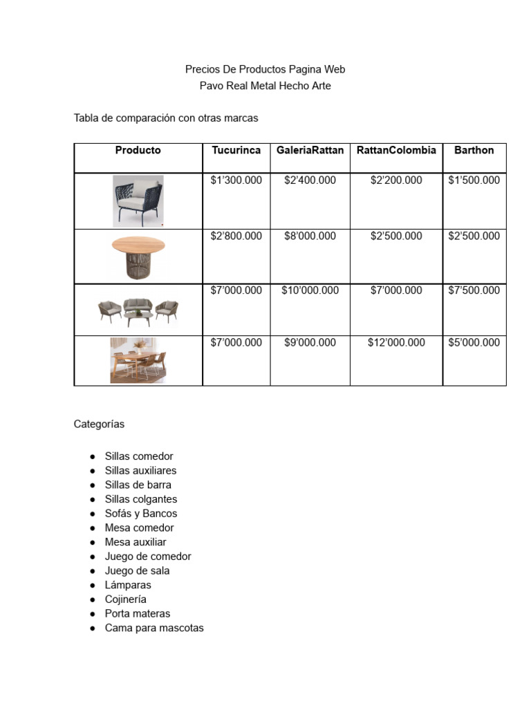 Comparacion de Precios de Productos Pagina Web.docx | PDF | Sofá | Fibras